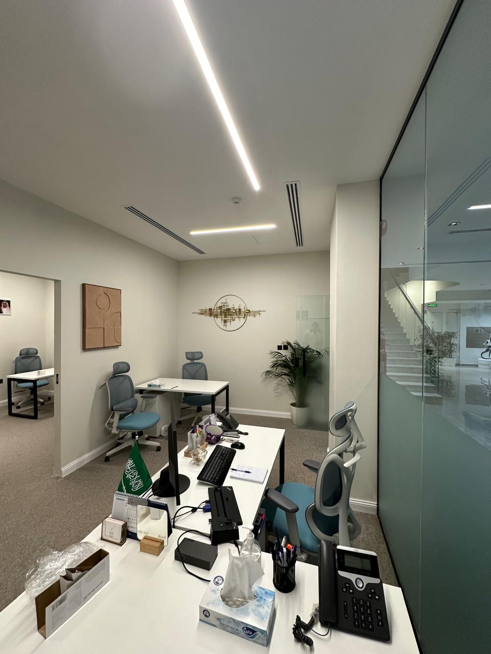 تصميم وتنفيذ وتأثيث منطقة عمل مع منطقة استراحة موظفين